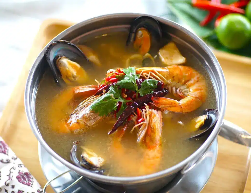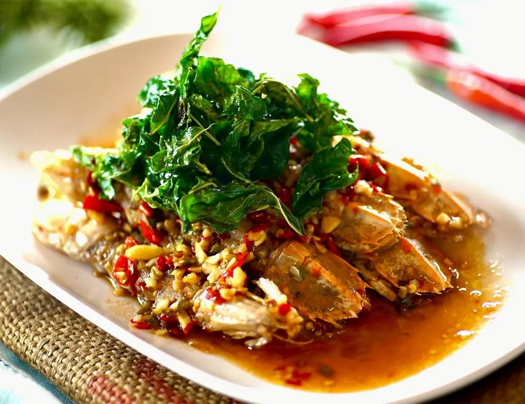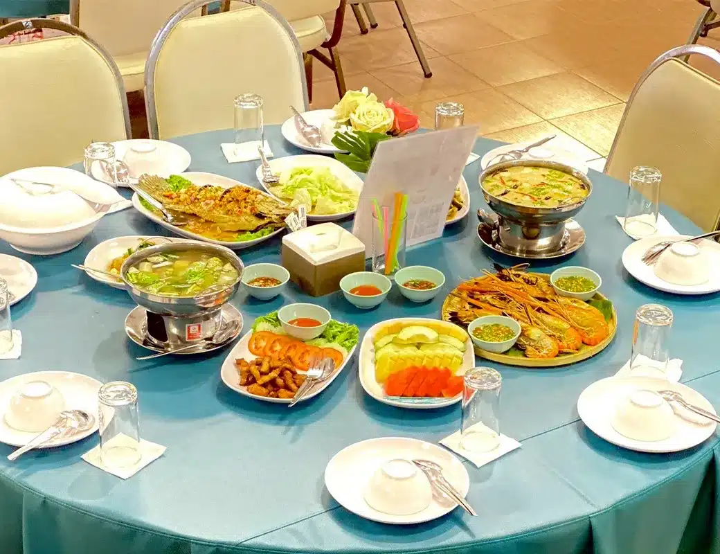 เมนูแนะนำที่ใครมาก็ต้องสั่ง ได้แก่ กุ้งแม่น้ำเผาตัวโตๆ สดเด้ง ต้มยำกุ้งแม่น้ำรสจัดจ้าน เนื้อปูผัดผงกระหรี่สุดละมุน ปลากระพงกลางศึกที่ราดซอสรสเข้มข้น หมูกรอบคั่วพริกเกลือหนังกรอบนอกนุ่มใน และหอยจ้อปูที่ทอดใหม่ๆ หอมกรอบทุกคำ และยังมีเมนูจัดเซตไว้รองรับนักท่องเที่ยวหมู่คณะอีกหลากหลายเซตตามงบประมาณ พร้อมบริการอาหารพิเศษตามคำขอ
