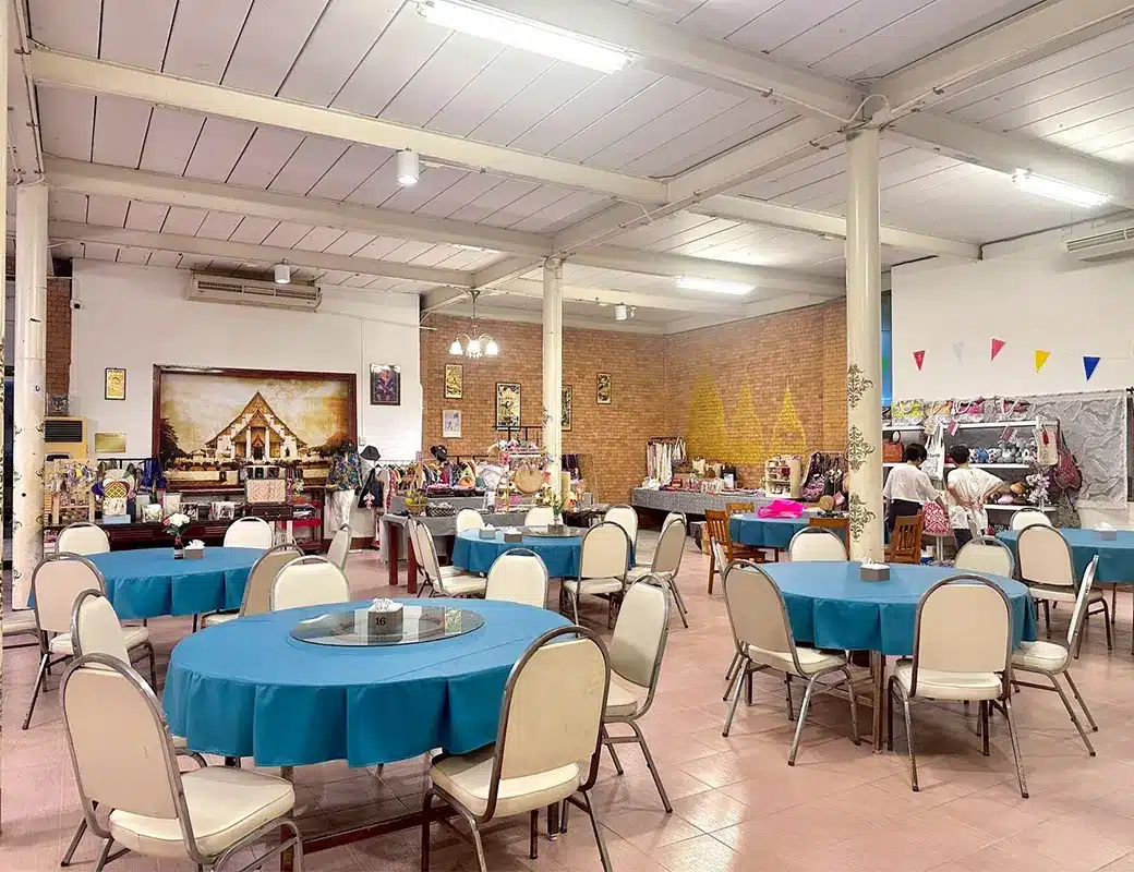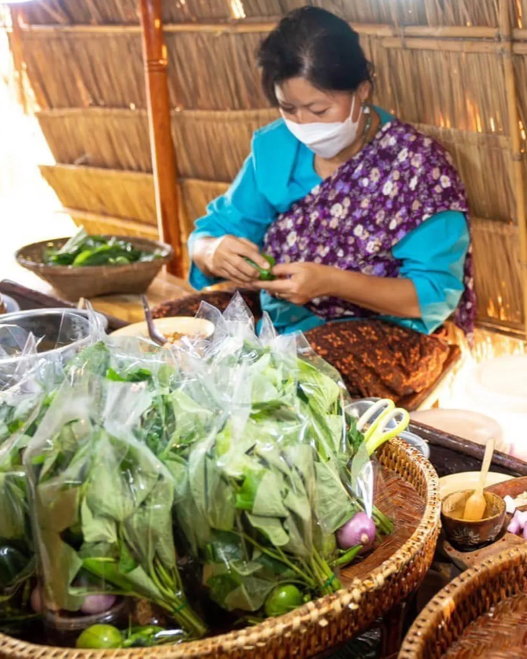 บรรยากาศโดยรอบรายล้อมด้วยเจดีย์เก่าและธรรมชาติร่มรื่น อยู่ติดกับ วัดมเหยงคณ์ นักท่องเที่ยวสามารถเดินเล่นในตลาดน้ำ ต่อด้วยการนั่งช้างเที่ยวชมรอบวัด ได้ทั้งอิ่มท้อง อิ่มใจ และอิ่มบุญในที่เดียว!