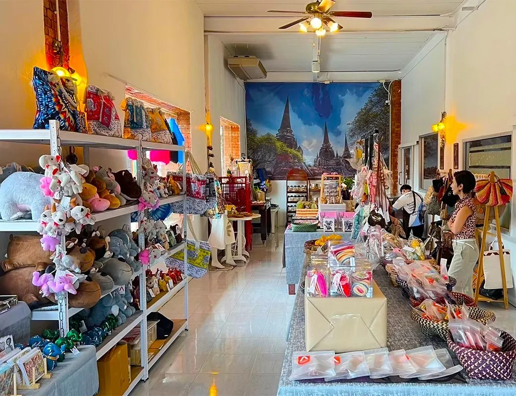 ร้านตั้งอยู่ตรงข้ามปางช้าง ภายในตลาดน้ำอโยธยา เดินทางสะดวก มีที่จอดรถบัสกว้างขวางไม่ต้องวนหาที่จอด ที่นี่เป็นจุดแวะหลักของนักท่องเที่ยวในอยุธยา ที่มาครบทั้งของกิน ของฝาก และวิวถ่ายภาพสวยๆ ก่อนกลับบ้าน